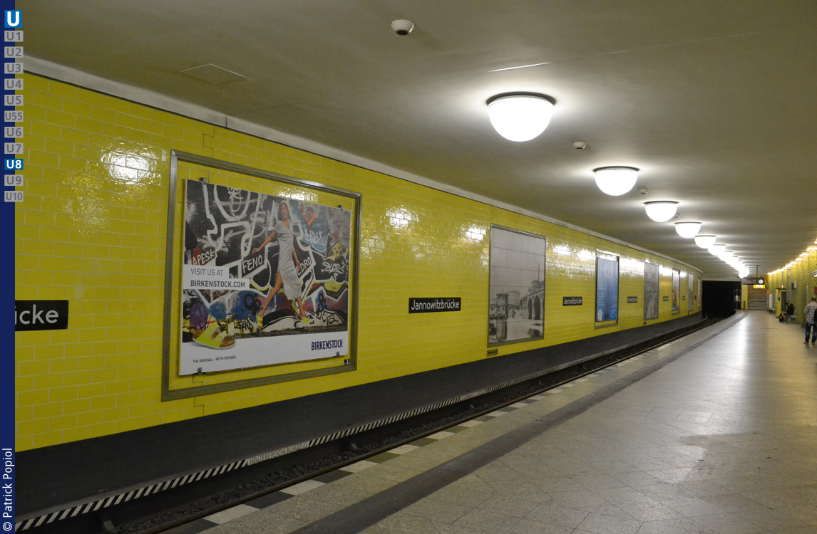 | Besonderheiten | Unter dem Bahnsteig existiert ein Tunnelstutzen als bauliche Vorleistung im Rohbau für eine damals geplante Linie von Moabit zum Görlitzer Bahnhof, die inzwischen verworfen wurde. |