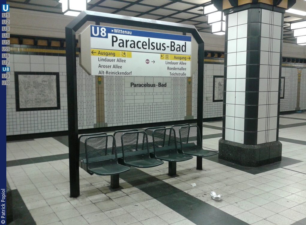 Weiter in Richtung Norden. Am 18.04.1930 war die GN-Bahn bis nach Gesundbrunnen weitergeführt worden. Erst am 07.10.1977 erreichte die Linie 8 den bahnhof Osloer Straße. Abschließend konnte man am 27.04.1987 den Bahnhof Paracelsus-Bad und am 24.09.1994 den heutugen Endbahnhof Wittenau erreichen.