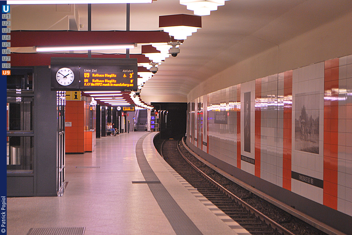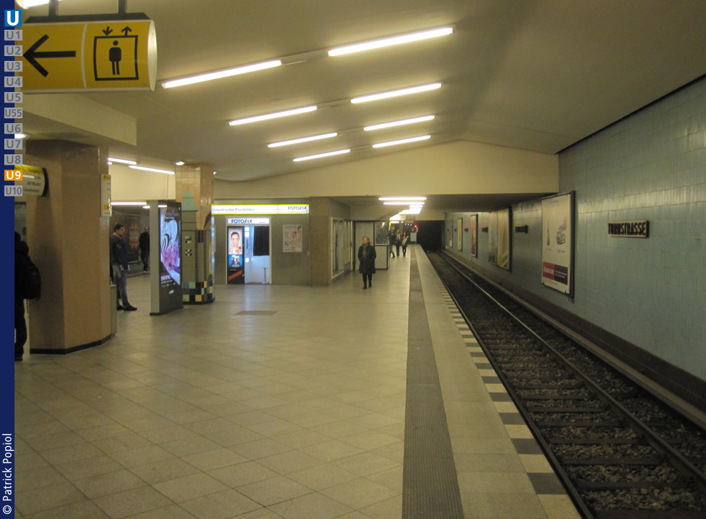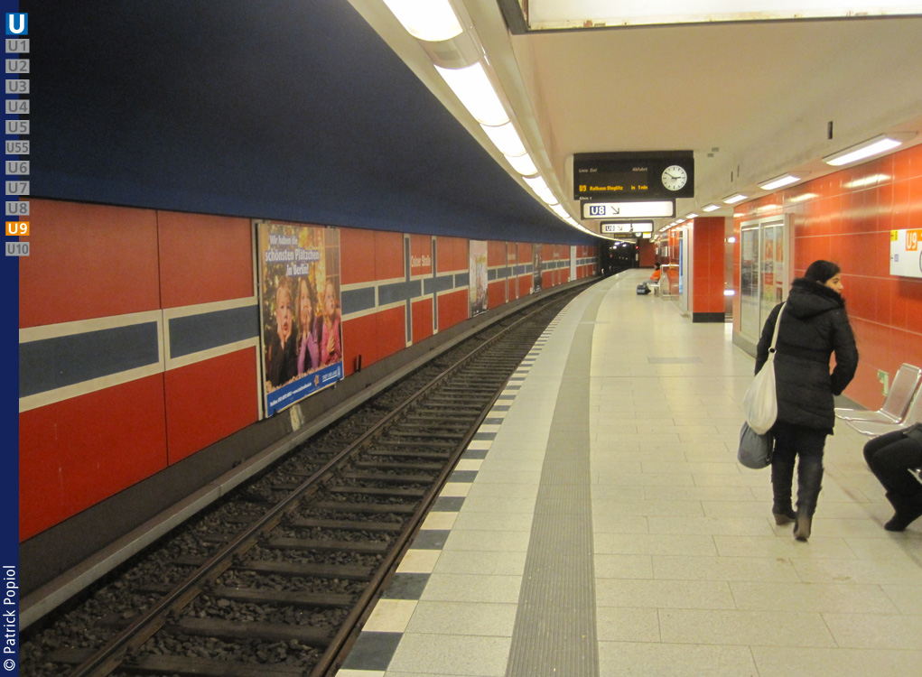 | Besonderheiten: | Dieser Bahnsteig war für die Linie U10 vorgesehen. Der für die U9 Bestimmte befindet sich südöstlich im Rohbau und wird bis auf Weiteres nicht ausgebaut. |